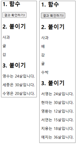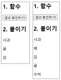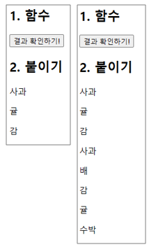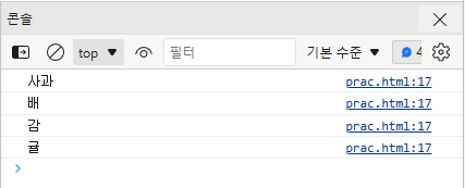 - 사과, 귤, 감을 삭제하고 리스트 fruit에 있는 값을 순차적으로 넣어주자