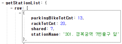 - 서울시 따릉이 API를 통해 거치대위치, 총 자전거 수, 이용가능 수를 표 형태로 보여주자