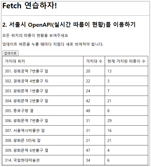 fetch("http://spartacodingclub.shop/sparta_api/seoulbike").then(res => res.json()).then(data => {