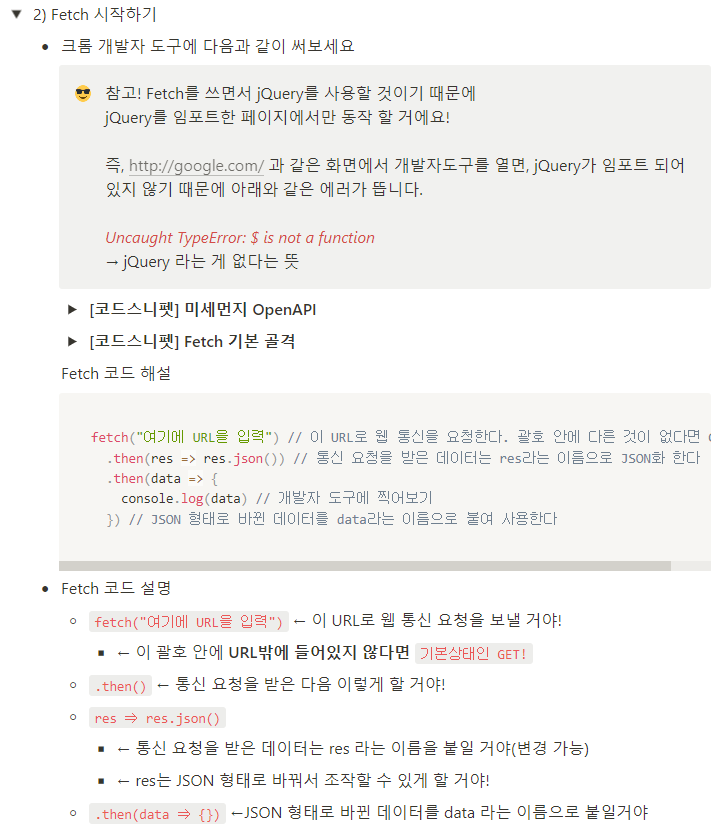 - Fetch는 url로 api의 데이터를 받아오는 것이다.