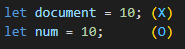3) 변수명으로는 예약어(document, location, window 등..) 약속어를 사용할 수 없다.