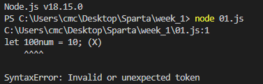 - 변수는 변하는 값을 저장하는 식별자로 let을 사용한다.
