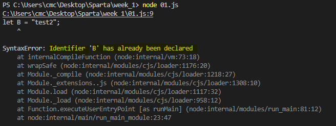 let은 선언한 이후에 다시 변수에 선언할 수 없다.