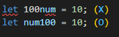 1) 변수명의 첫 글자로는 영문자, $, _(언더바) 만 올 수 있다.