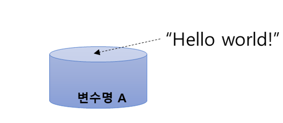 변수에 값을 저장하는 행위 만들어진 변수 A에 "Hello word"를 저장하는 것 |